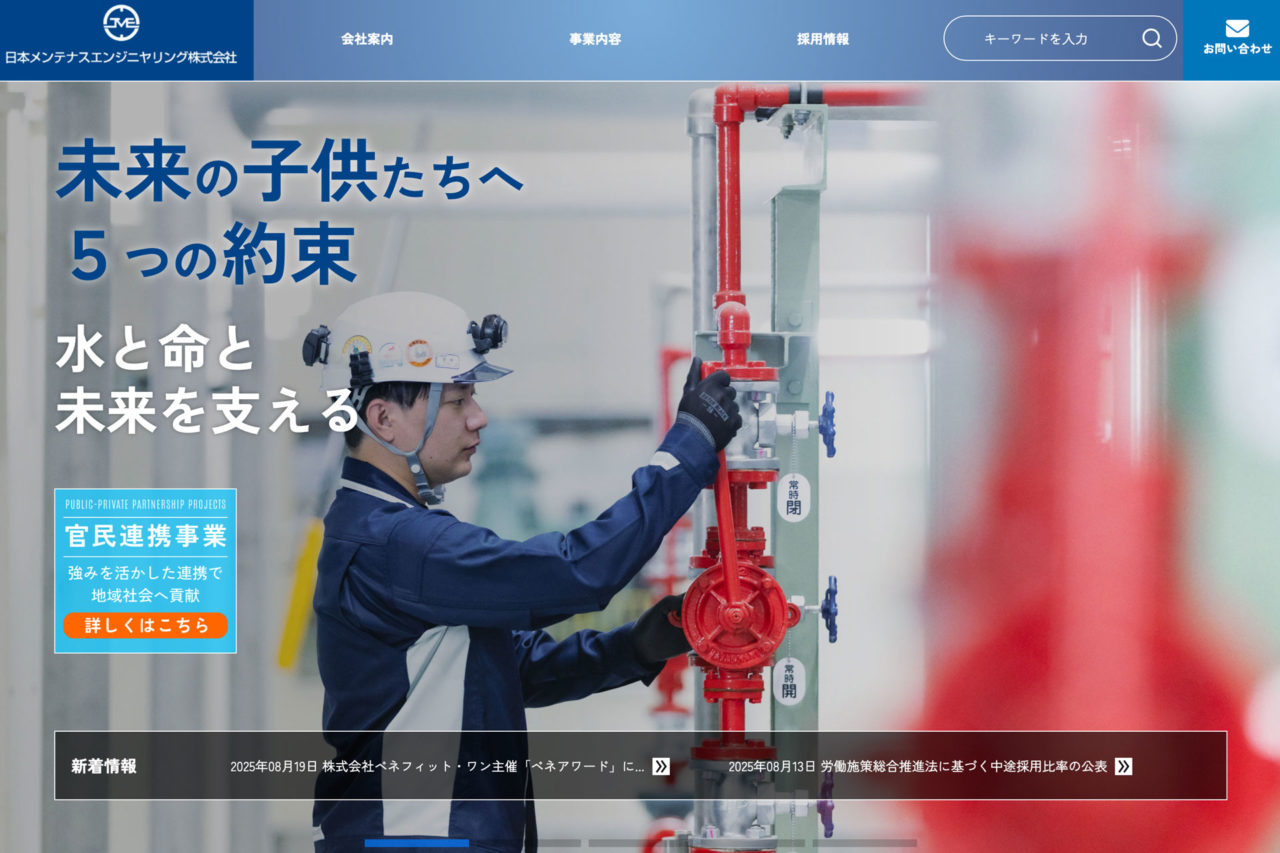 日本メンテナスエンジニヤリング株式会社さまのコーポレートサイトをWordPressで制作。