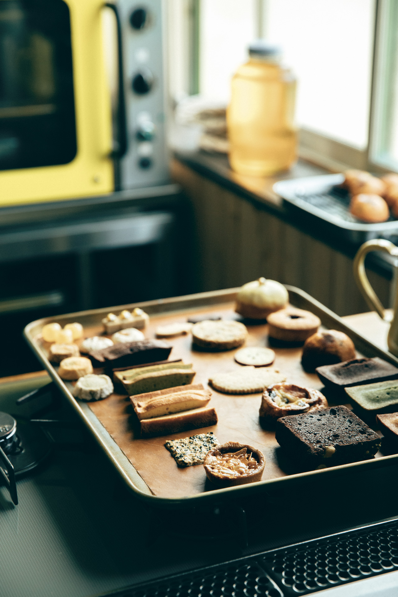 ナチュラル感や、焼き立て感を出すために、工房内で自然光だけで撮りました。